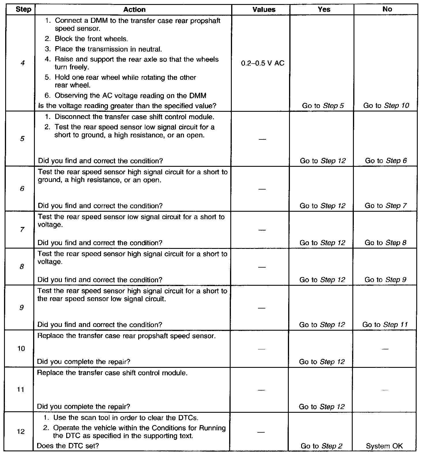 9. This step tests the rear speed sensor low circuit for a short to the rear speed sensor high circuit.