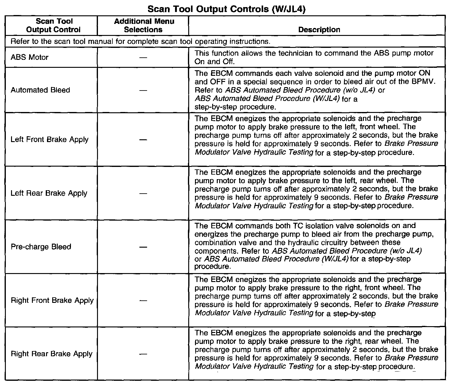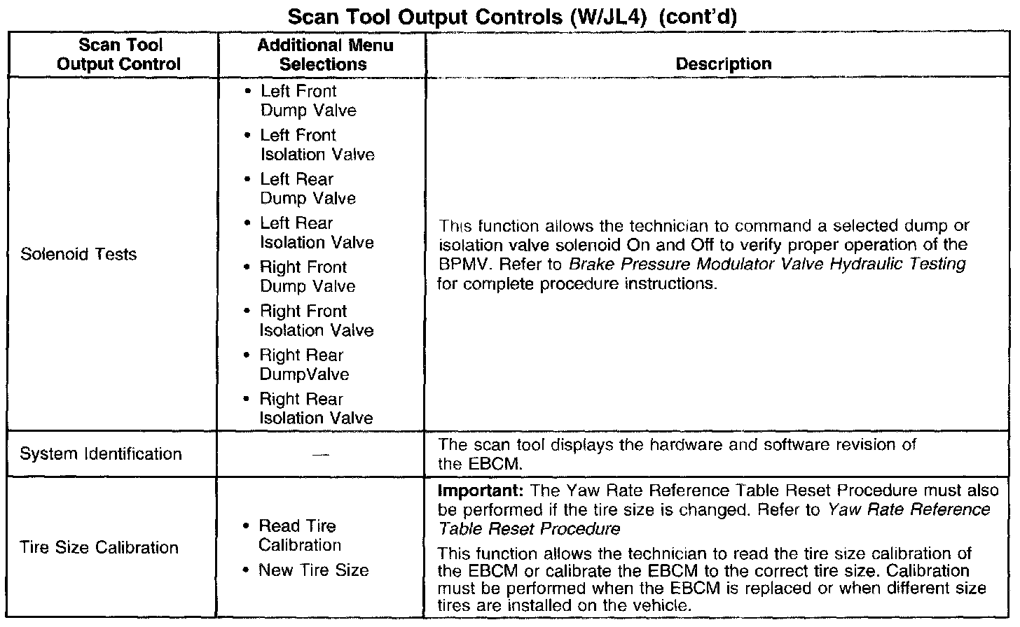 Scan Tool Output Controls (W/JL4) Continued Part 2: