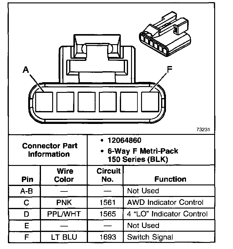 BW 4482-NR4 Transfer Case Shift Control Switch - C1 Connector End Views: