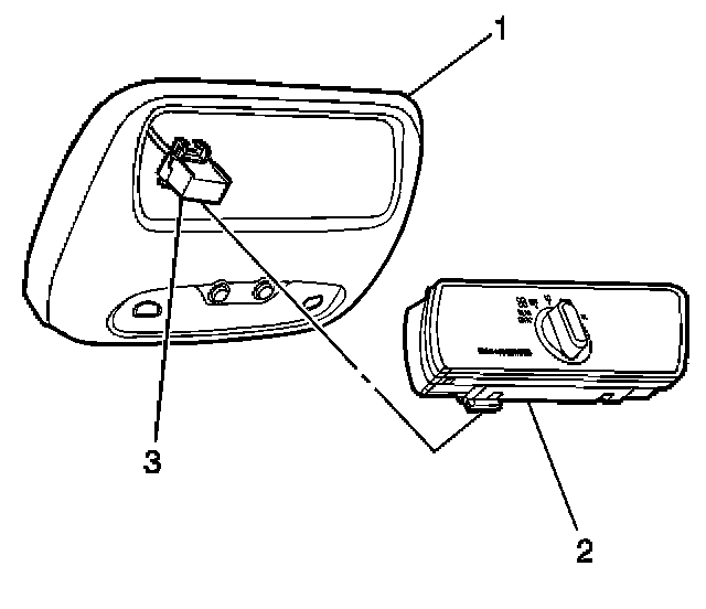 2. Remove the auxiliary blower motor switch (2) by releasing the tabs at the rear of the overhead console.