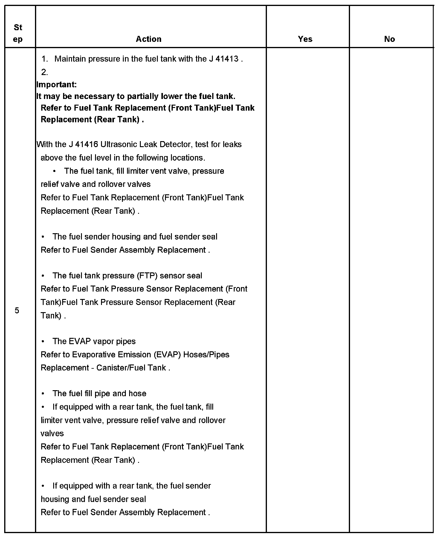 5. This test is to locate fuel vapors escaping above the fuel level in the fuel tank.