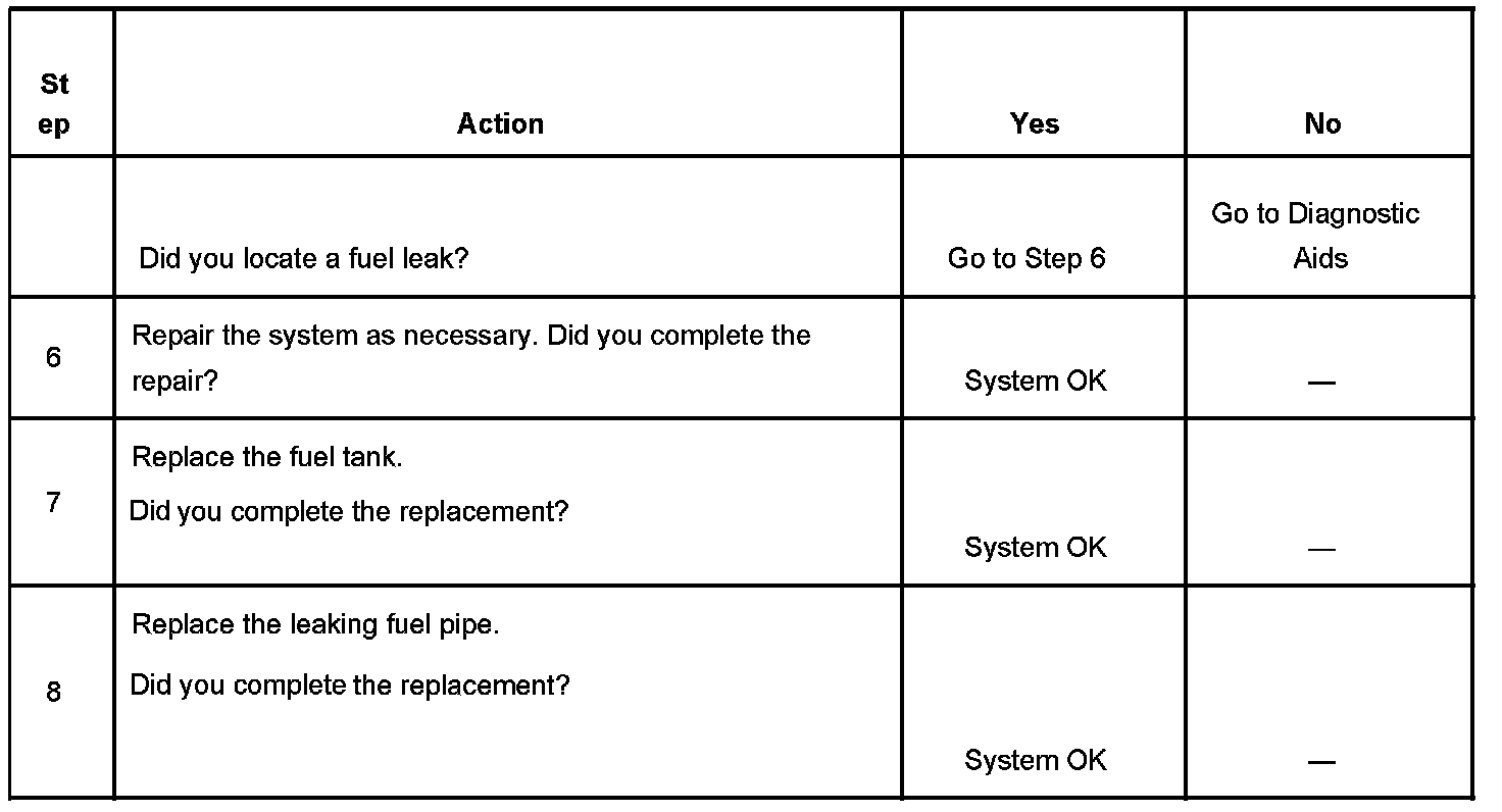 The fuel tank leak test is used to locate any fuel or fuel vapor escaping the fuel tank area. Fuel vapors escaping above the fuel level will be detected when the EVAP diagnostics completes one test cycle. The malfunction indicator lamp (MIL) will illuminate after the evaporative emission (EVAP) diagnostics completes two test cycles.