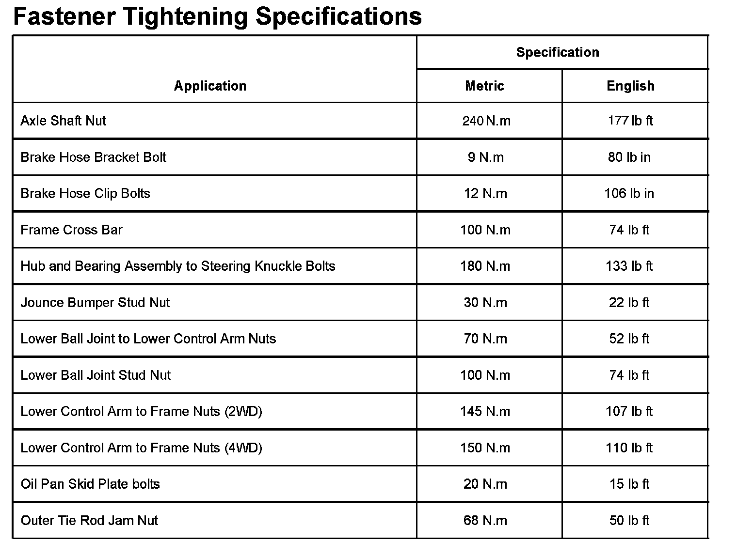 Fastener Tightening Specifications