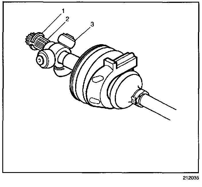 6. Install the tripot spider assembly (3) onto the halfshaft bar (2).