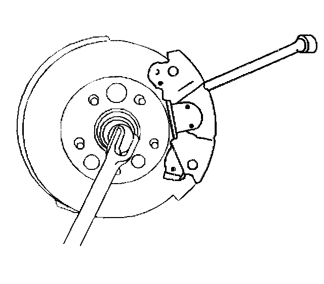 4. Insert a drift or a large screwdriver through the brake caliper into one of the brake rotor vanes in order to prevent the drive axle wheel drive shaft from turning.