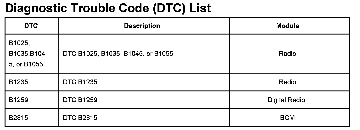 DTC's B1025 - B2815: