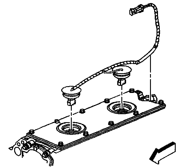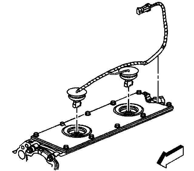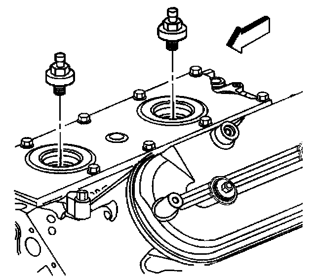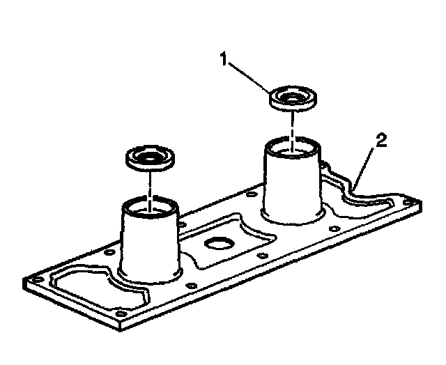 2. Install the knock sensor oil seals (1) into the engine valley cover (2).