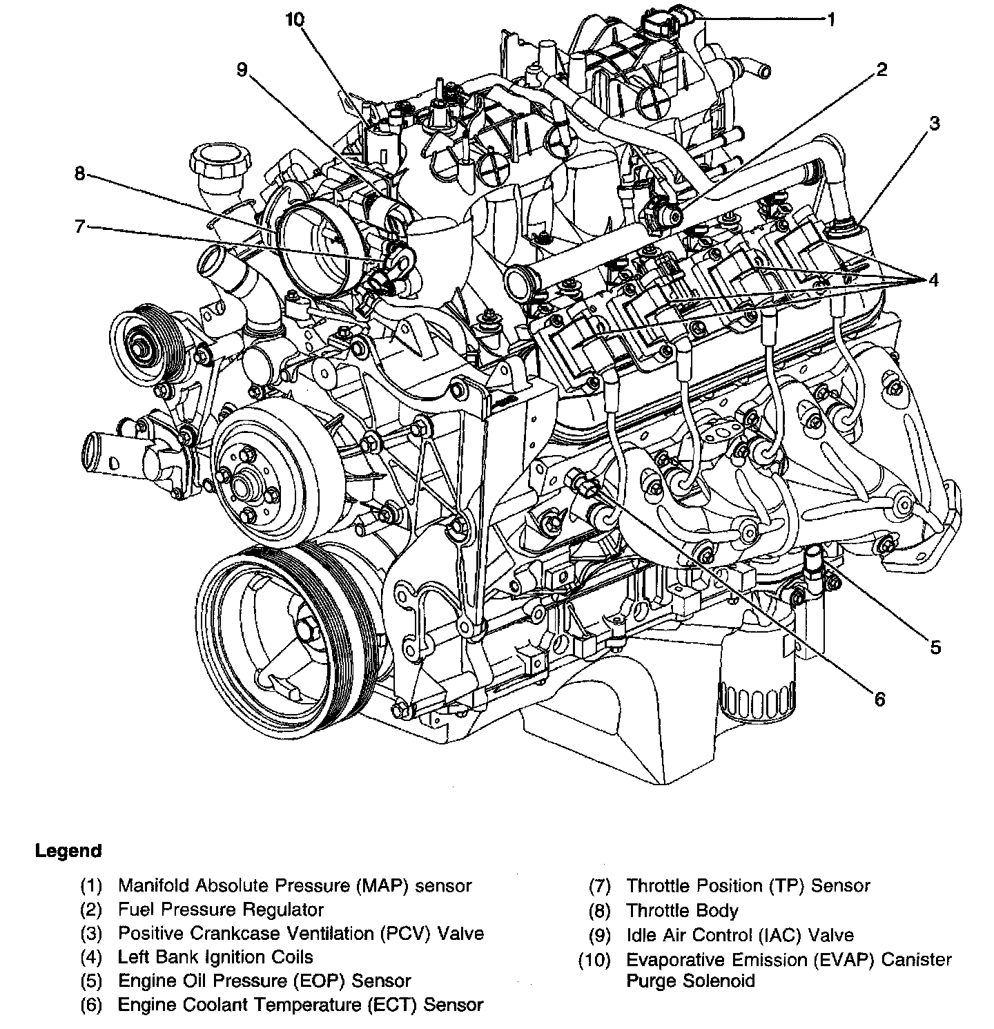 Full Engine View Left Side - 4.8L, 5.3L, 6.0L: