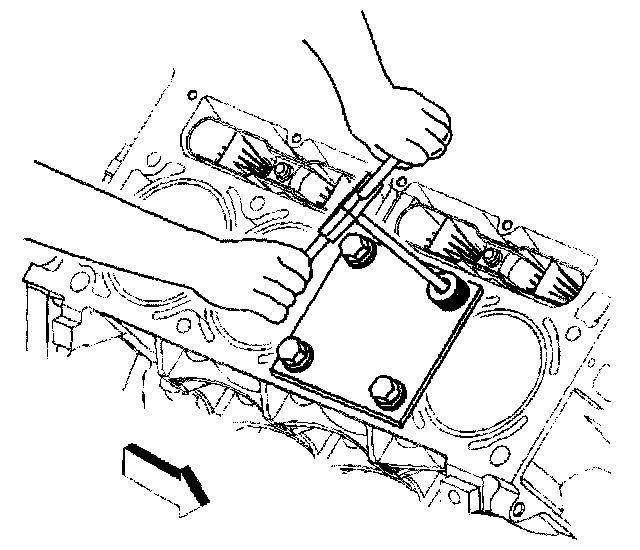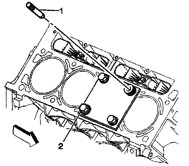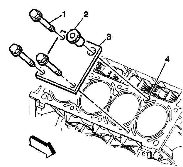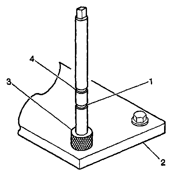 2. Install the fixture plate 13), bolts (1), and bushing (2) onto the engine block deck.