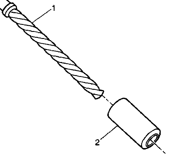 7. Install the sleeve (2) onto the drill (1), if required.