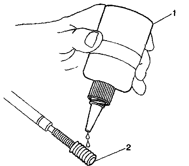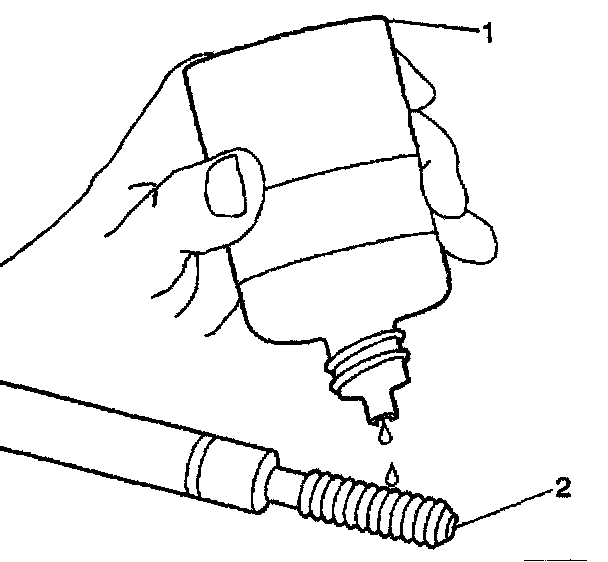 16. Lubricate the threads of the installer tool (2) with the driver oil (1).