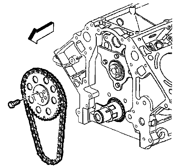 Notice: Do not turn the crankshaft assembly after the timing chain has been removed in order to prevent damage to the piston assemblies or the valves.