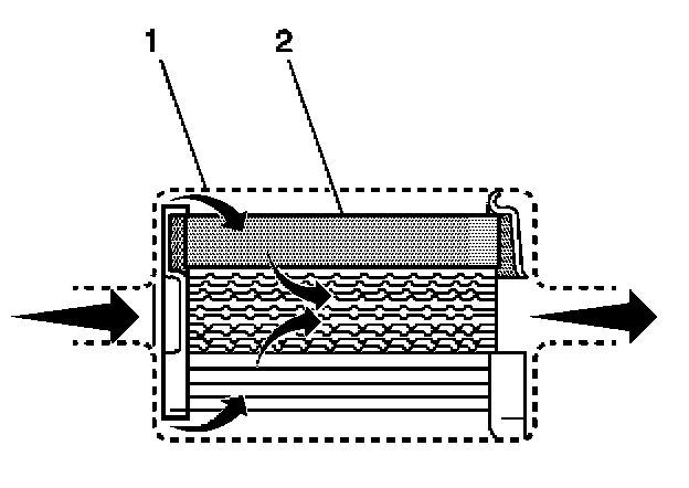 The fuel filter is located on the fuel feed pipe, between the fuel pump and the fuel injectors. The paper filter element (2) traps particles in the fuel that may damage the fuel injection system. The filter housing (1) is made to withstand maximum fuel system pressure, exposure to fuel additives, and changes in temperature. There is no service interval for fuel filter replacement. Replace a restricted fuel filter.