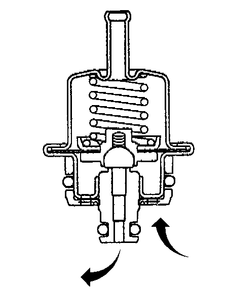 The fuel pressure regulator is a vacuum operated diaphragm relief valve. The diaphragm has fuel pressure on one side and regulator spring pressure and intake manifold vacuum on the other side. The fuel pressure regulator compensates for changes in intake manifold vacuum by changing the fuel pressure. In this way, the fuel pressure regulator maintains a constant pressure differential across the fuel injectors under all operating conditions.