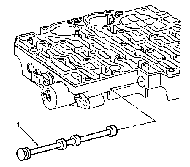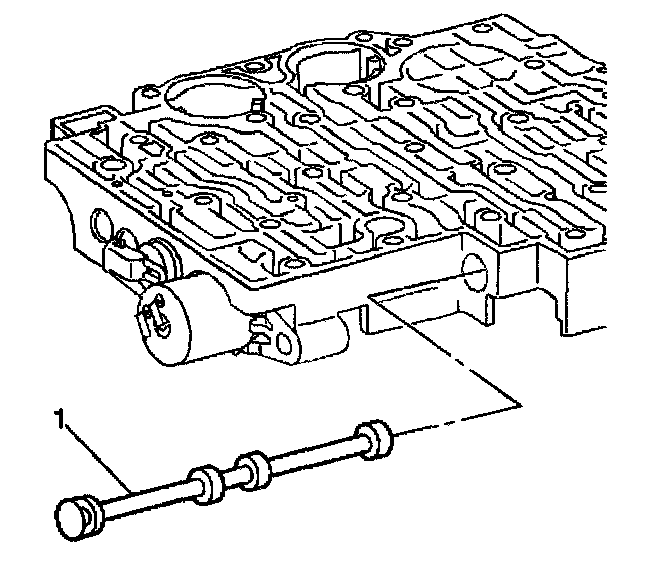 21. Remove the manual 2-1 band servo piston pin (1).