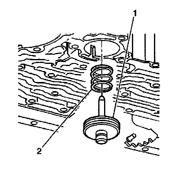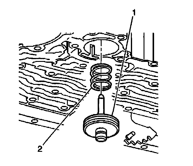 6. Install the manual 2-1 band servo piston cushion spring (2).