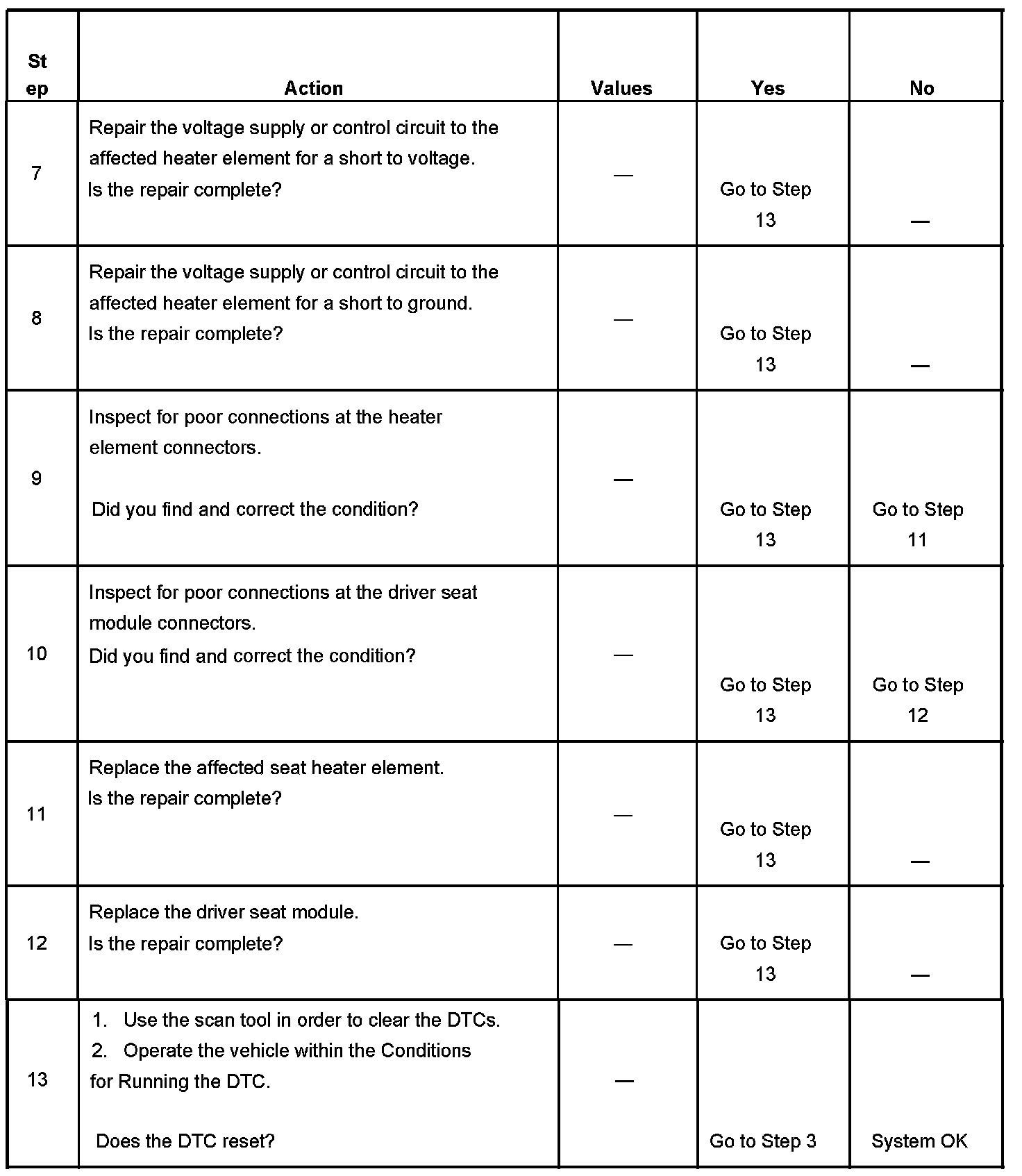 - When the fault is no longer present a history status DTC will be stored, and heated seat operation will be restored.
