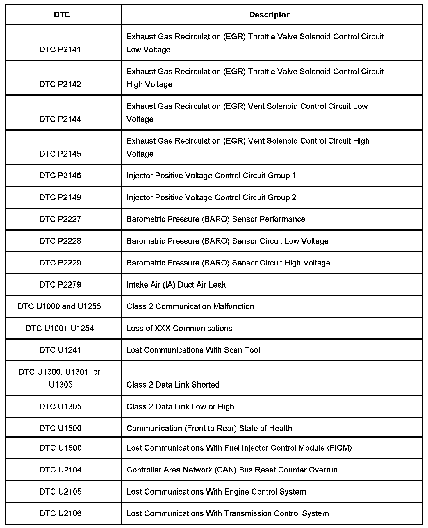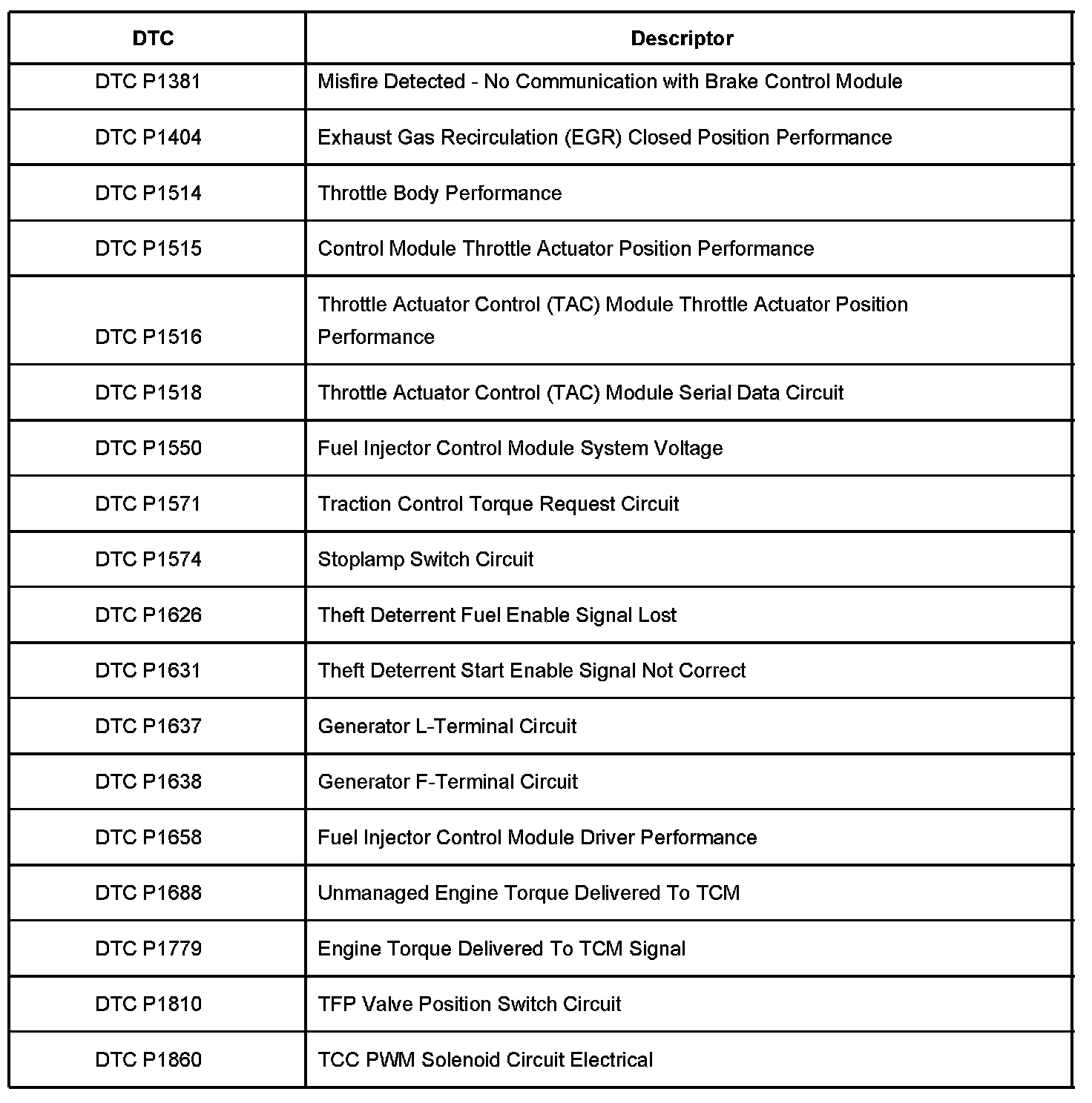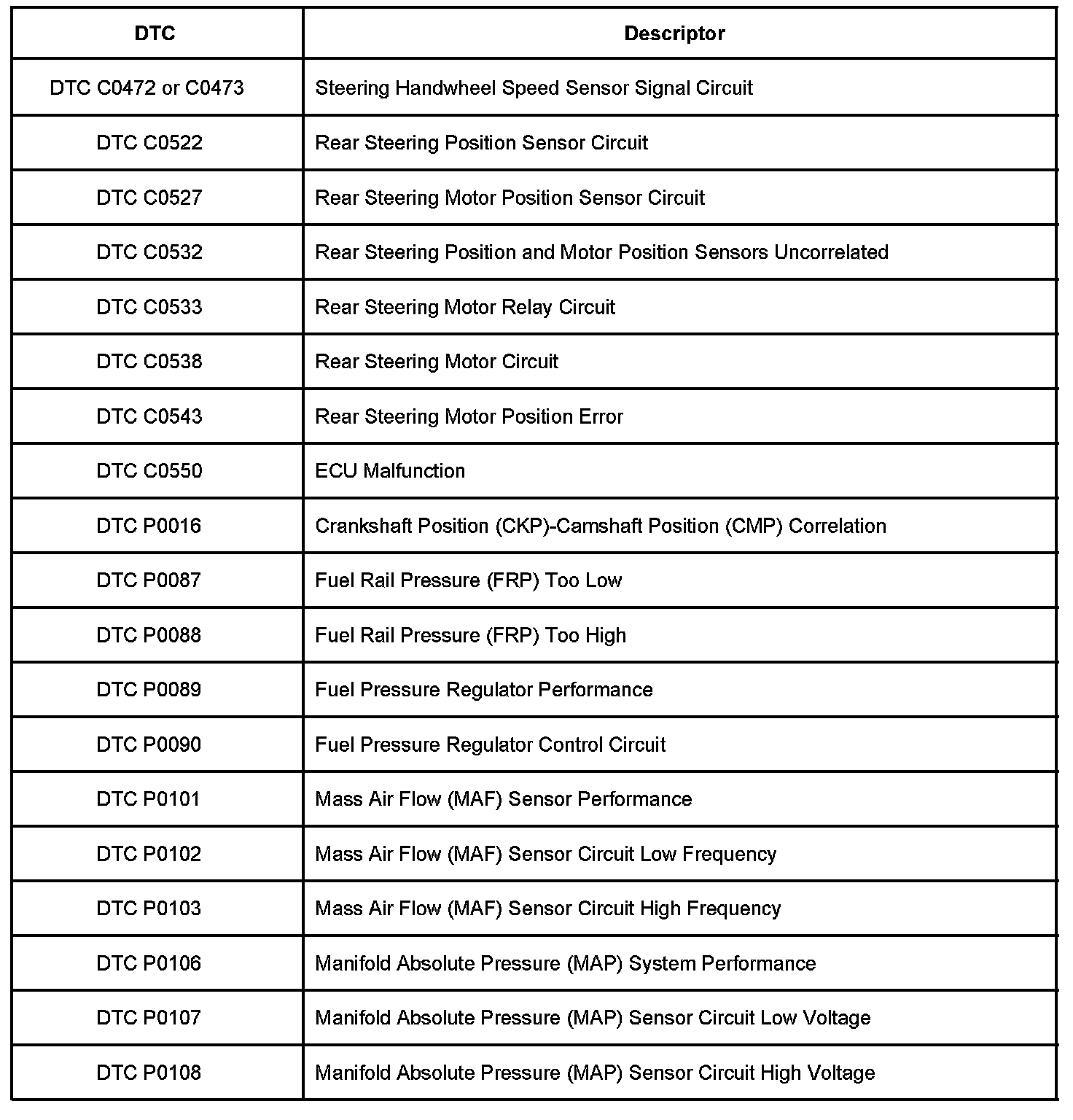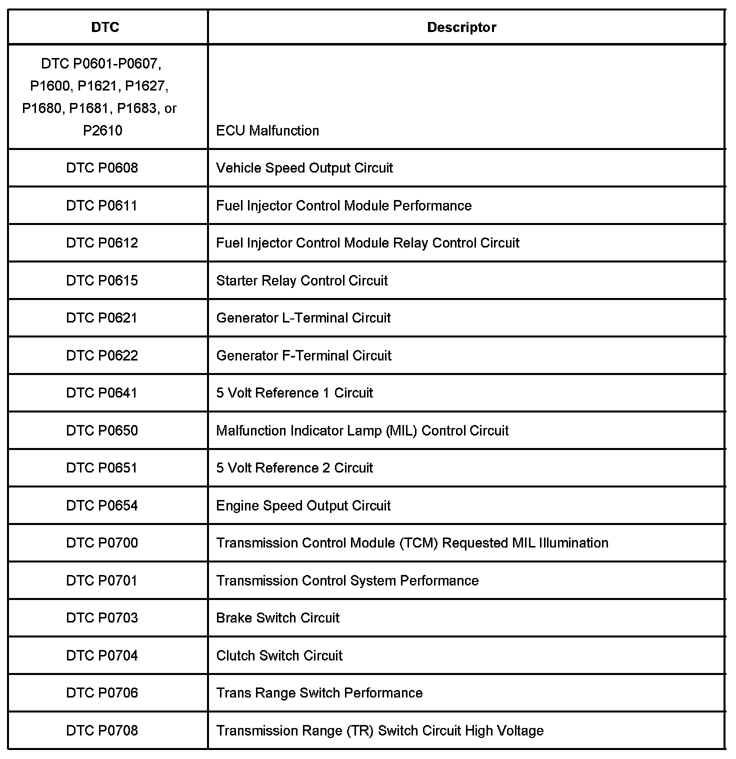 Diagnostic Trouble Code Description