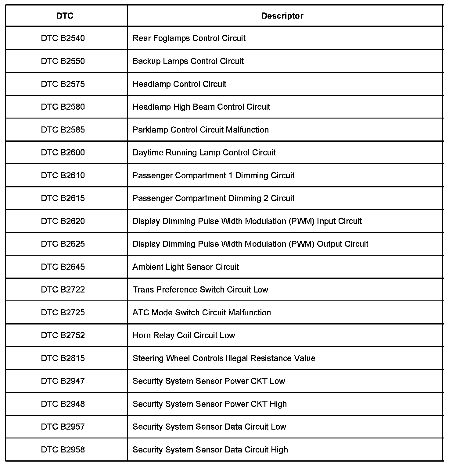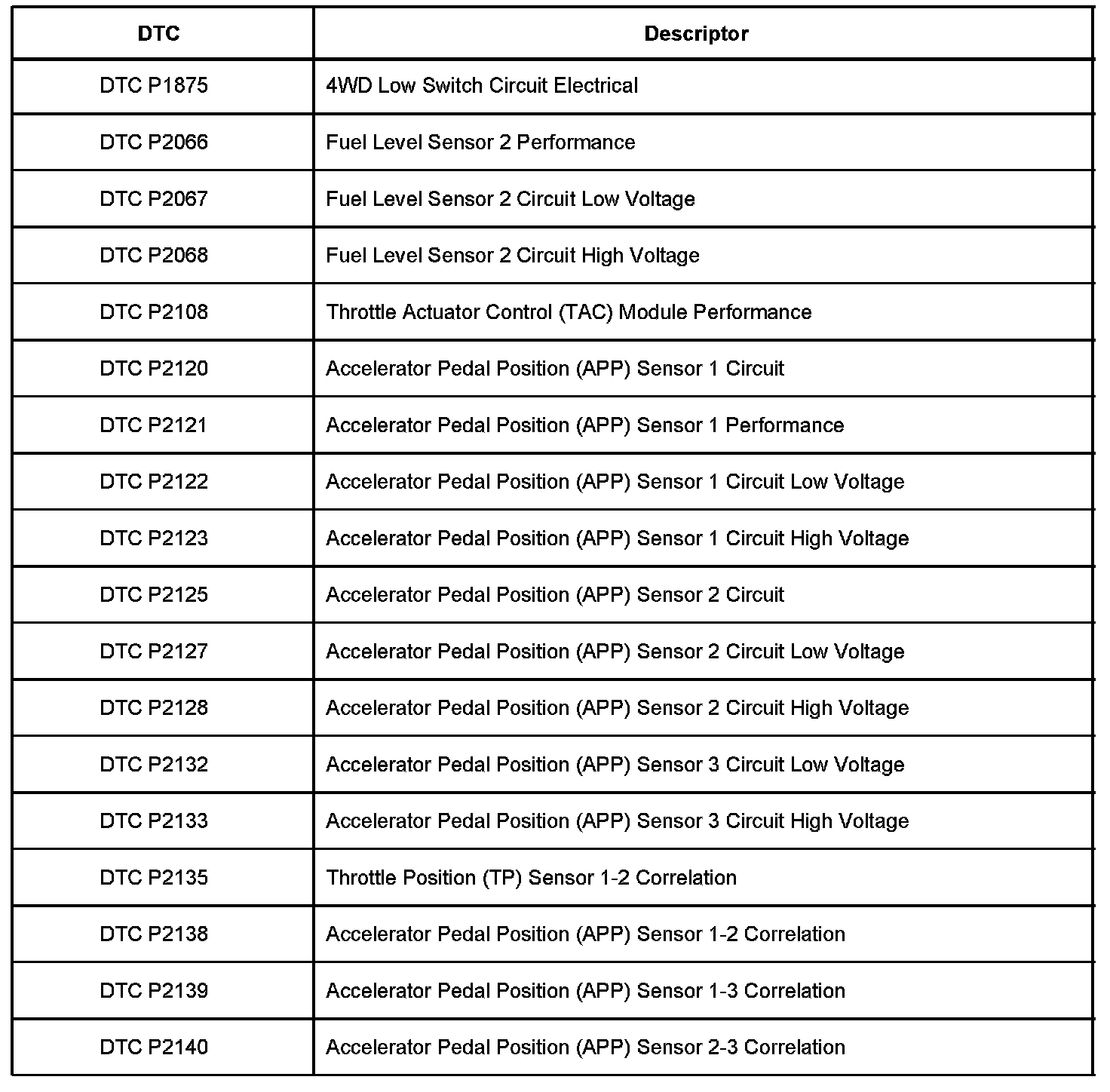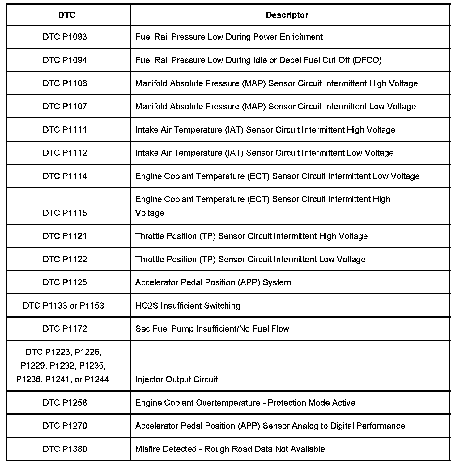 Diagnostic Trouble Code Description