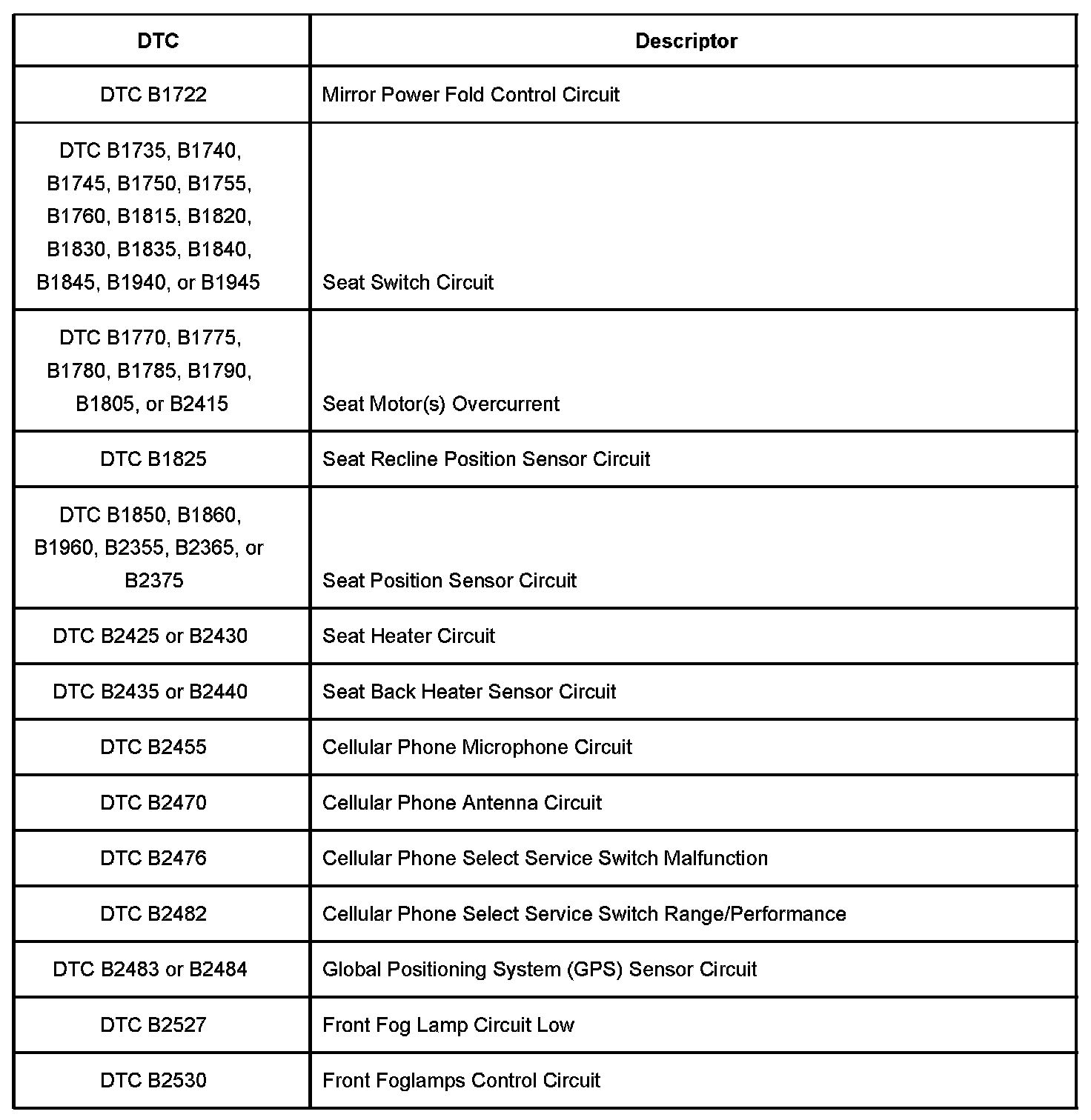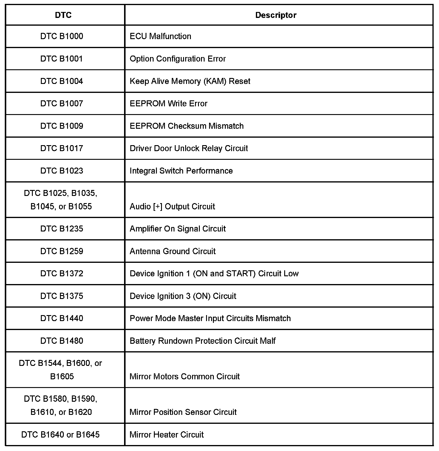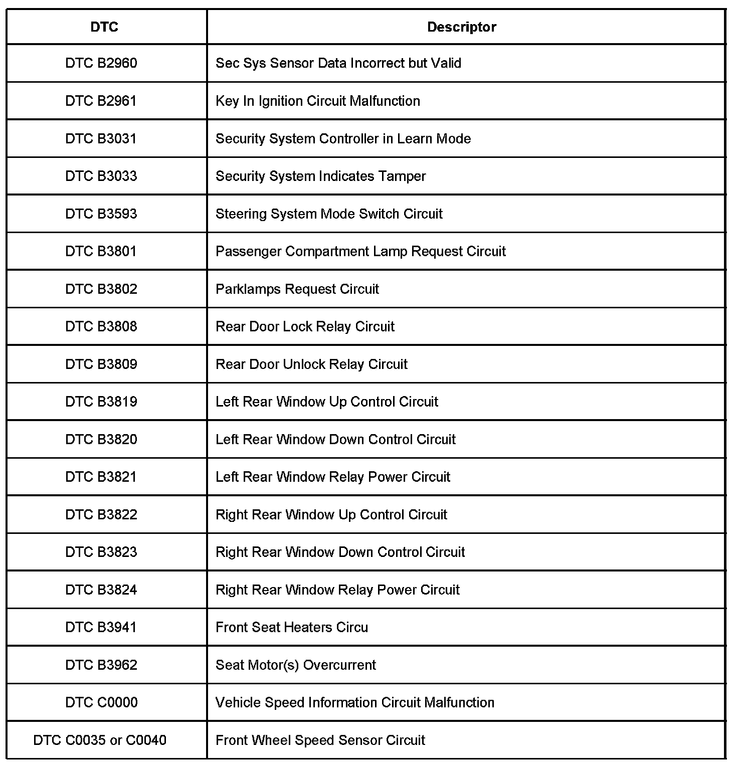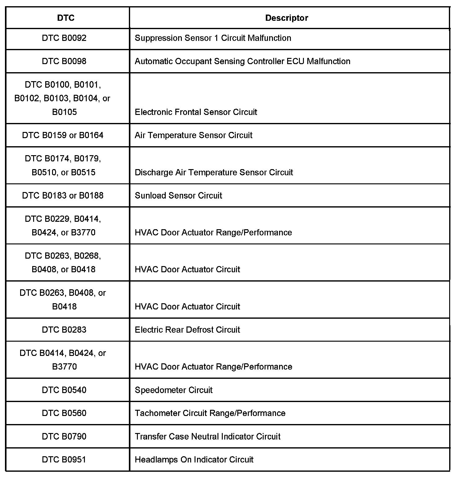 Diagnostic Trouble Code Description