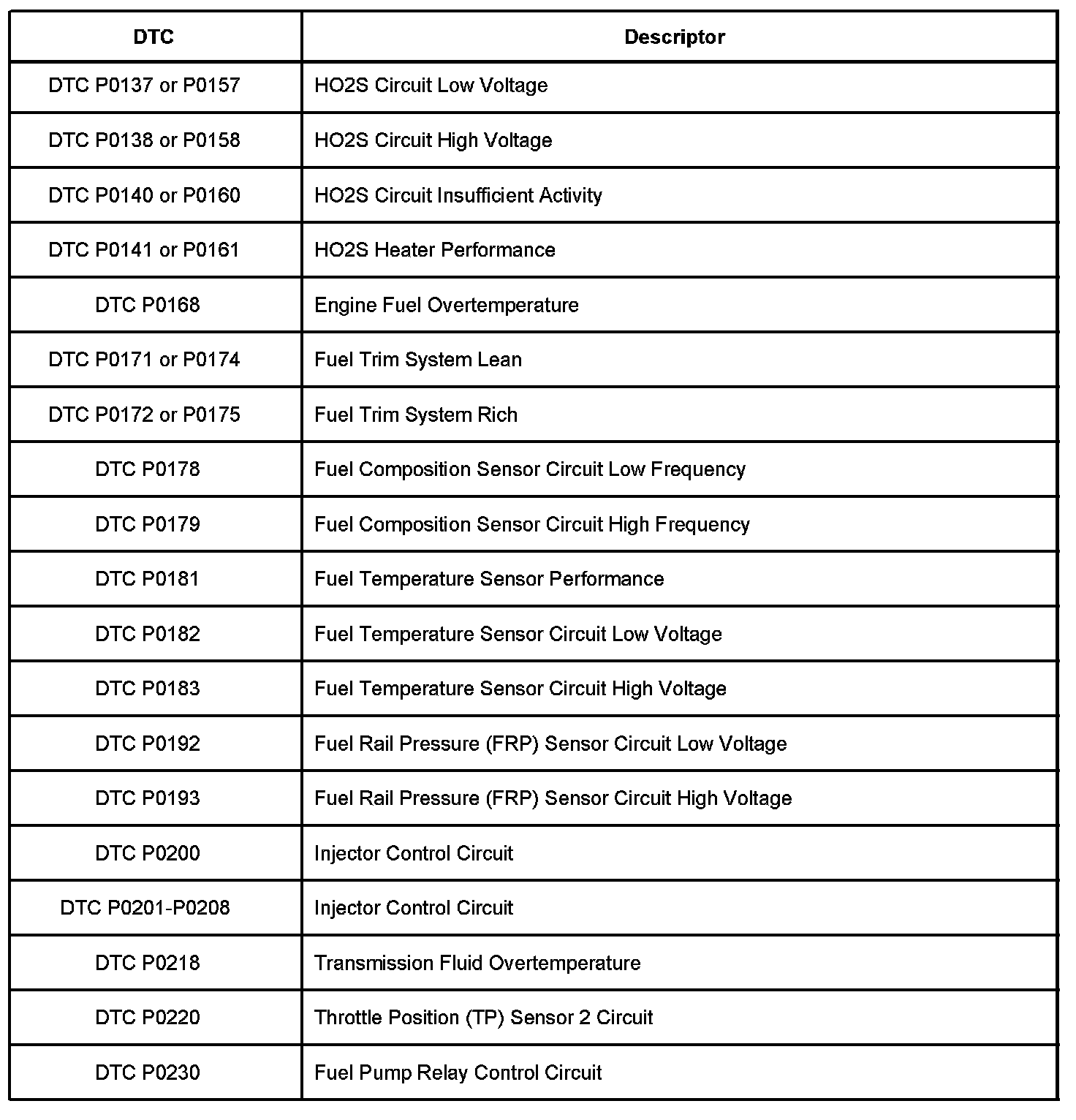 P0137 - P0230: