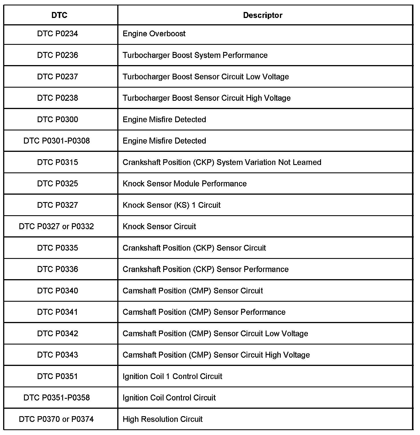 P0234 - P0374: