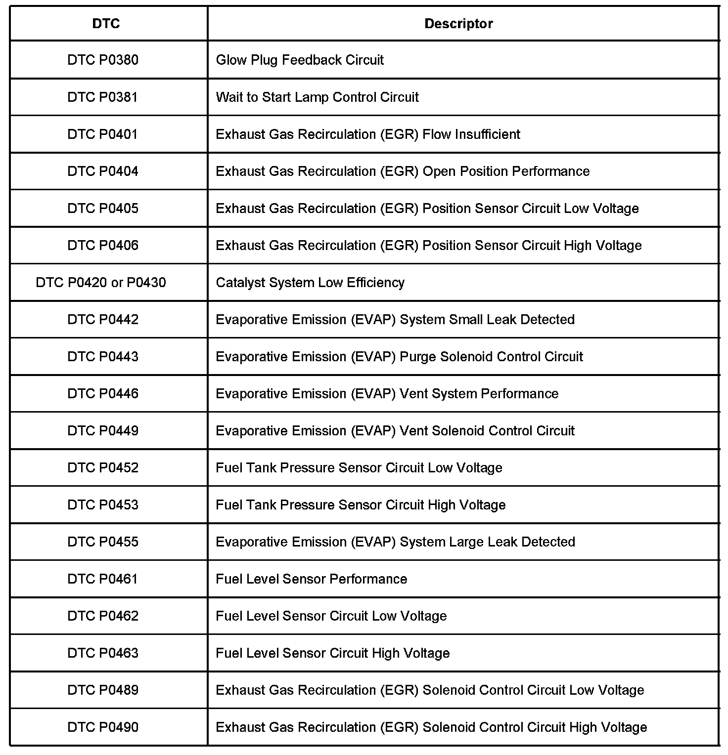 P0380 - P0490: