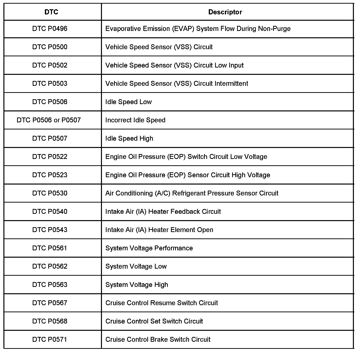 P0496 - P0571: