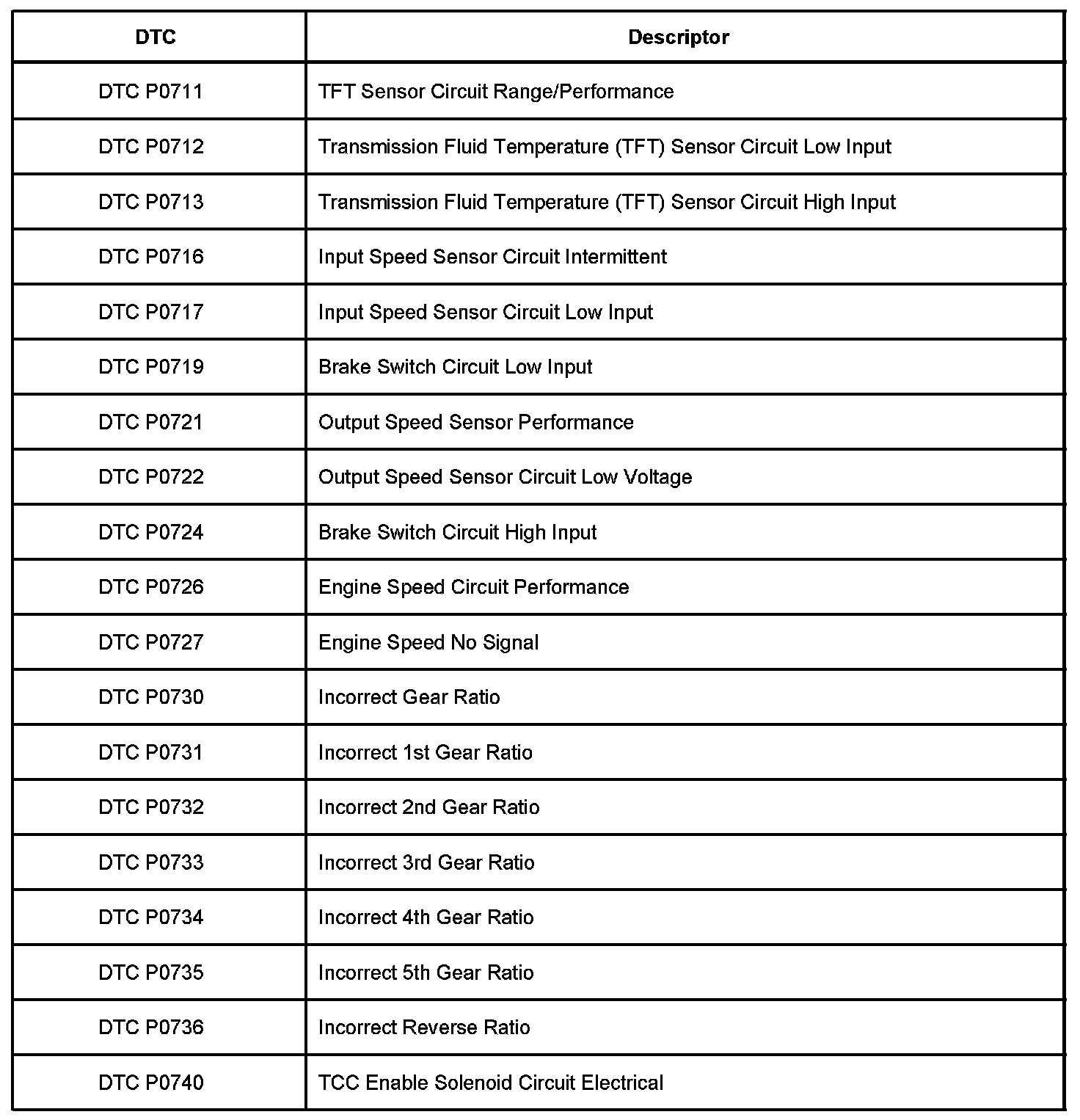 P0711 - P0740:
