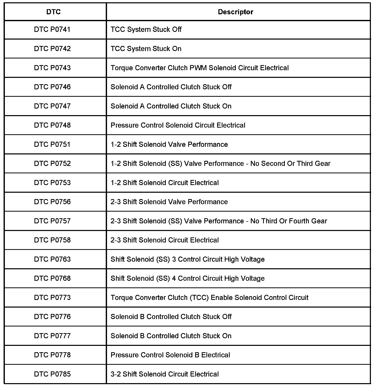 P0741 - P0785: