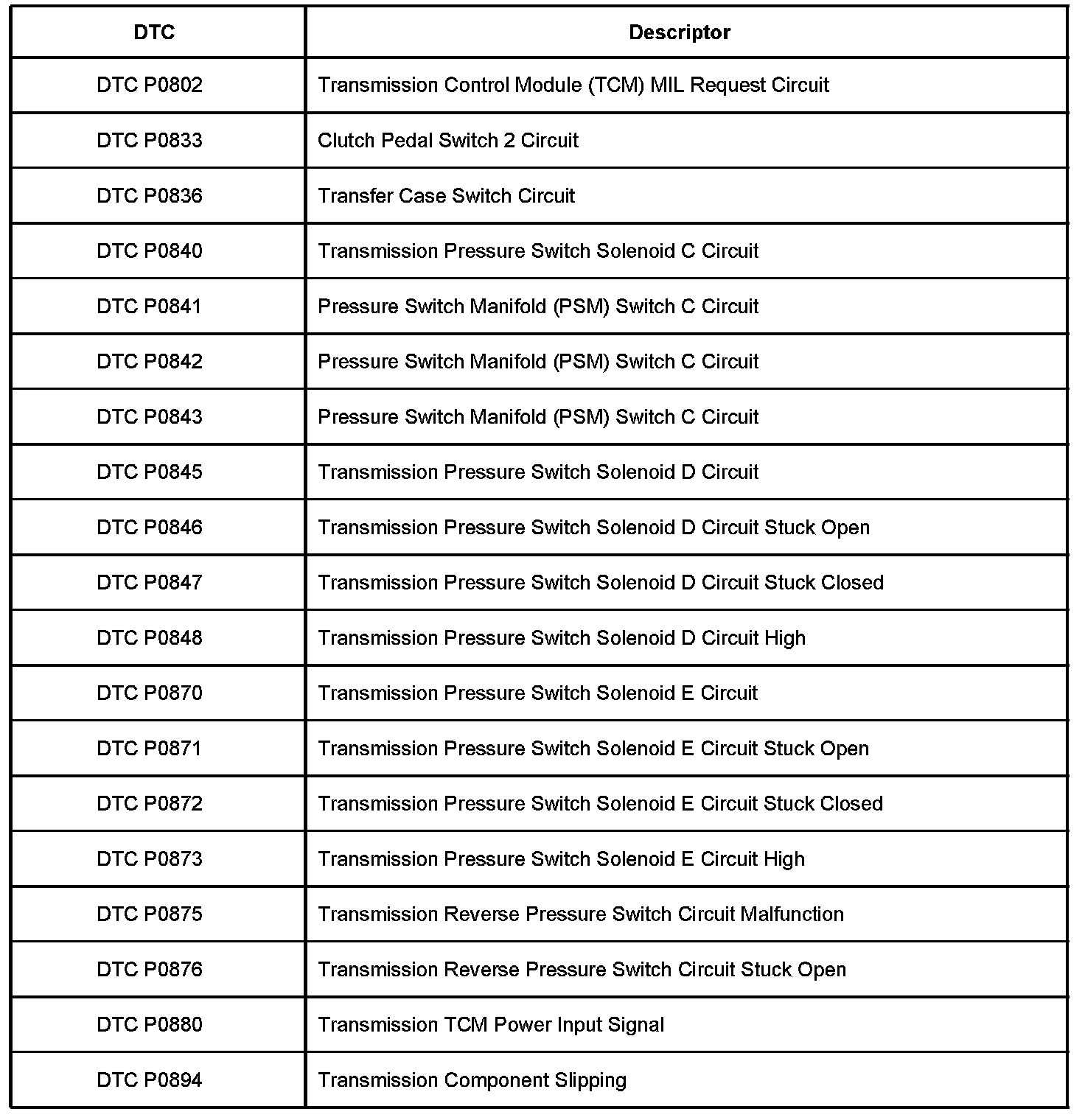 P0802 - P0894: