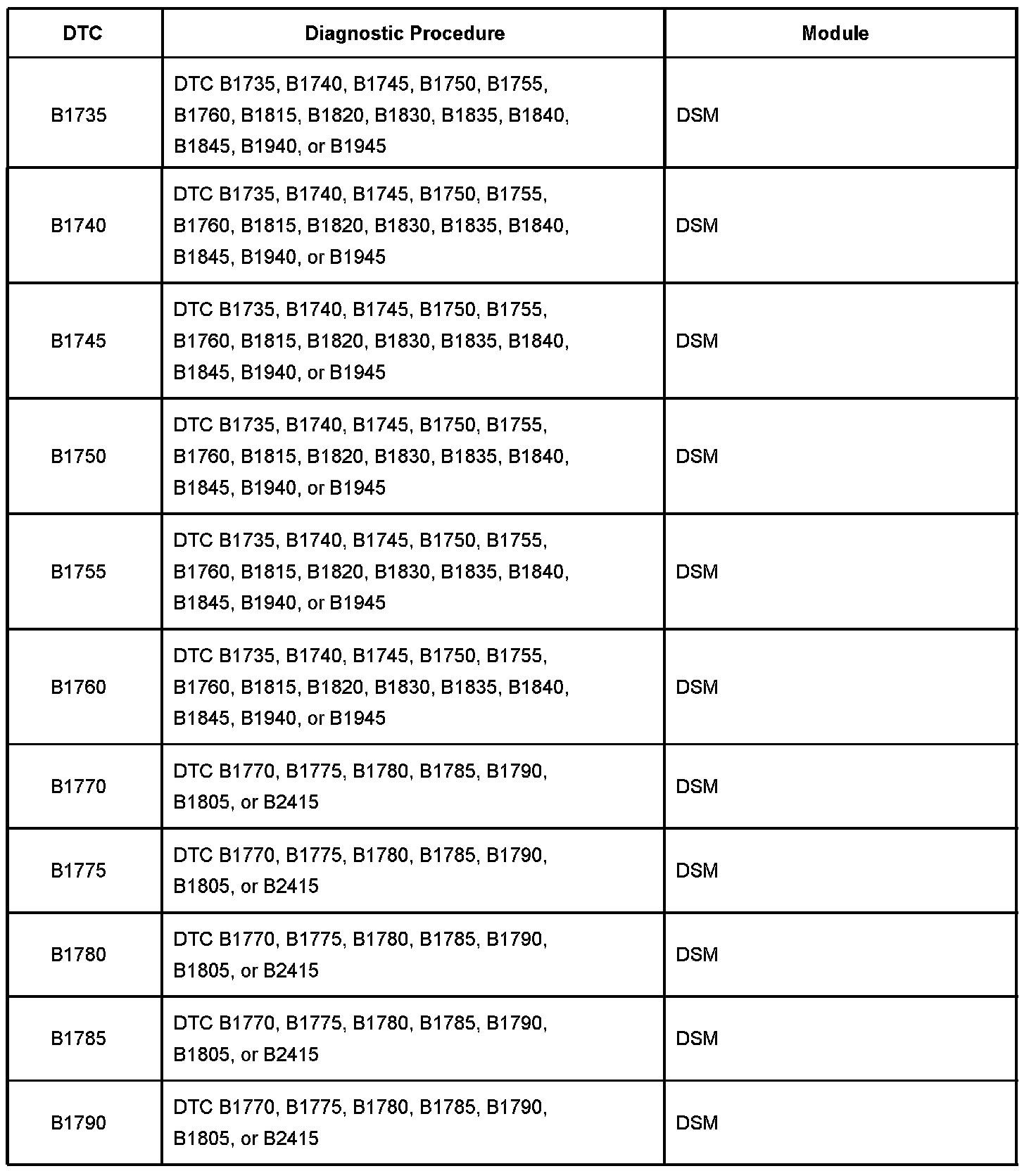 DTC B1735 - B1790: