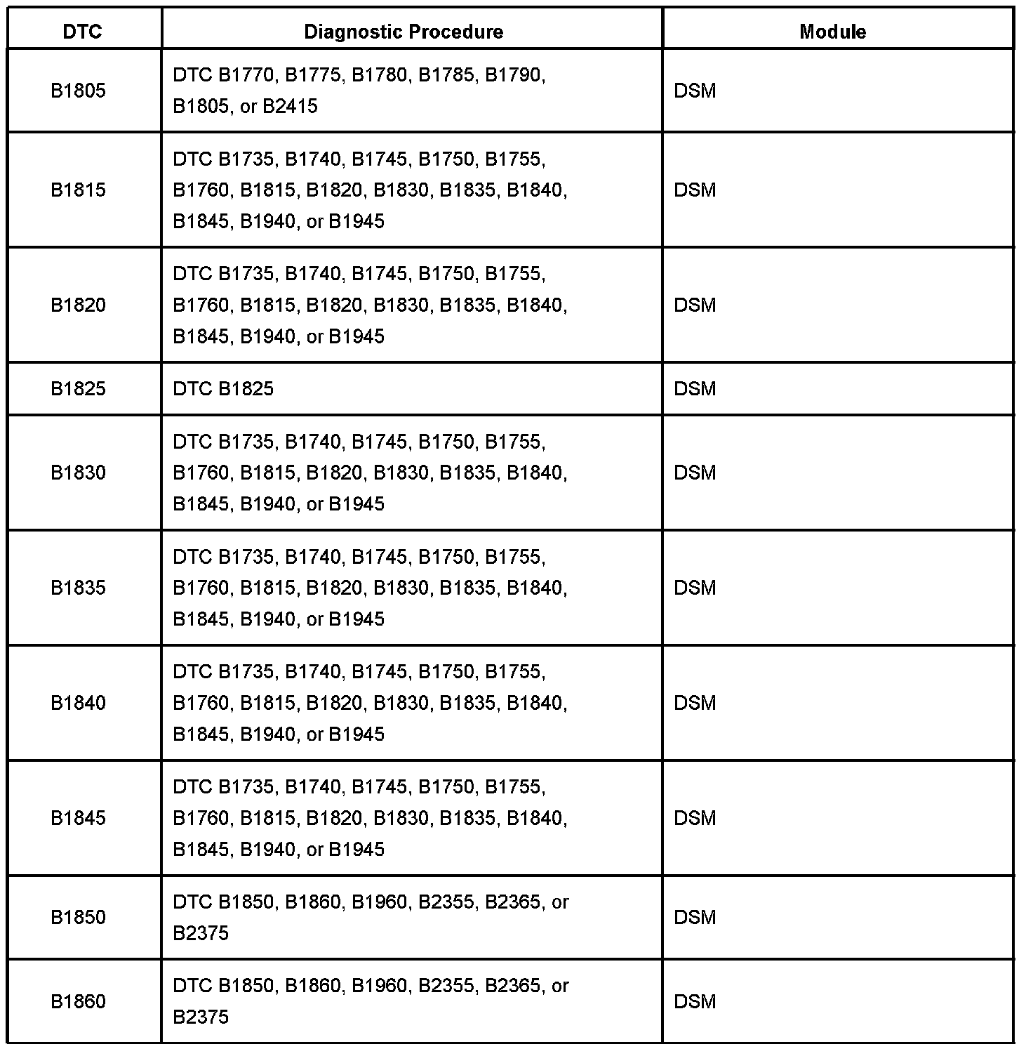 DTC B1850 - B1860: