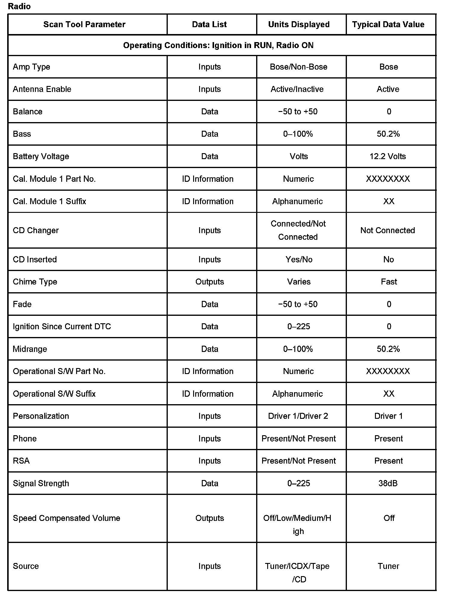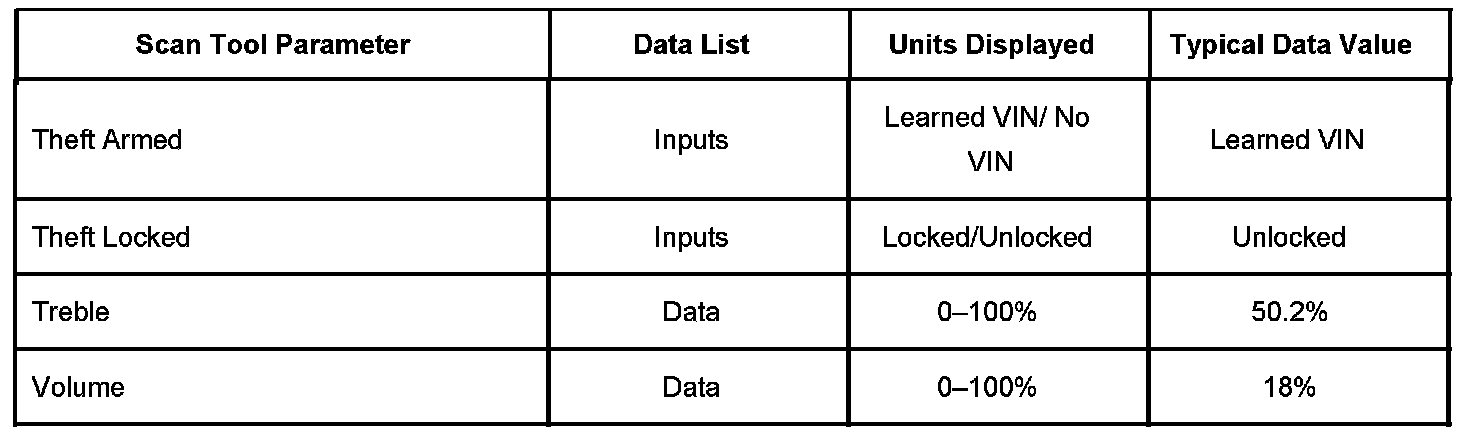 Scan Tool Data List - Radio