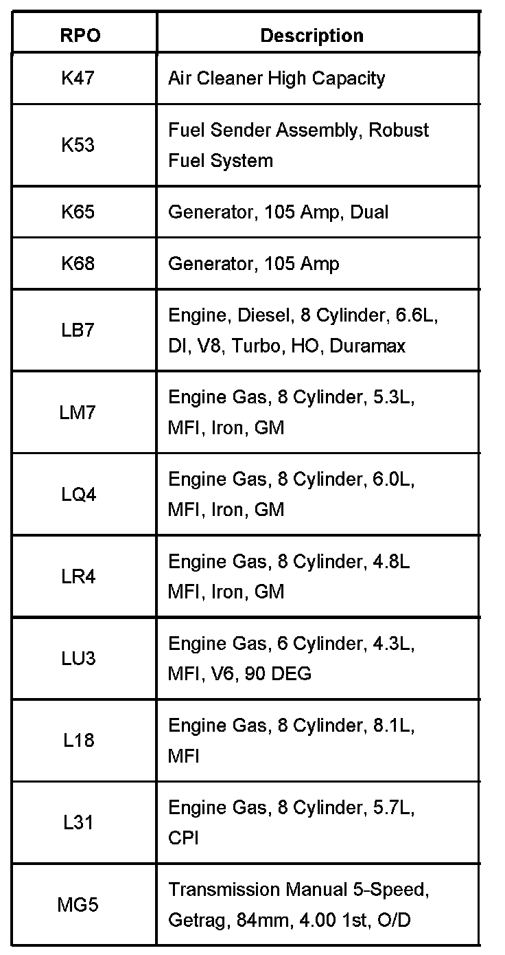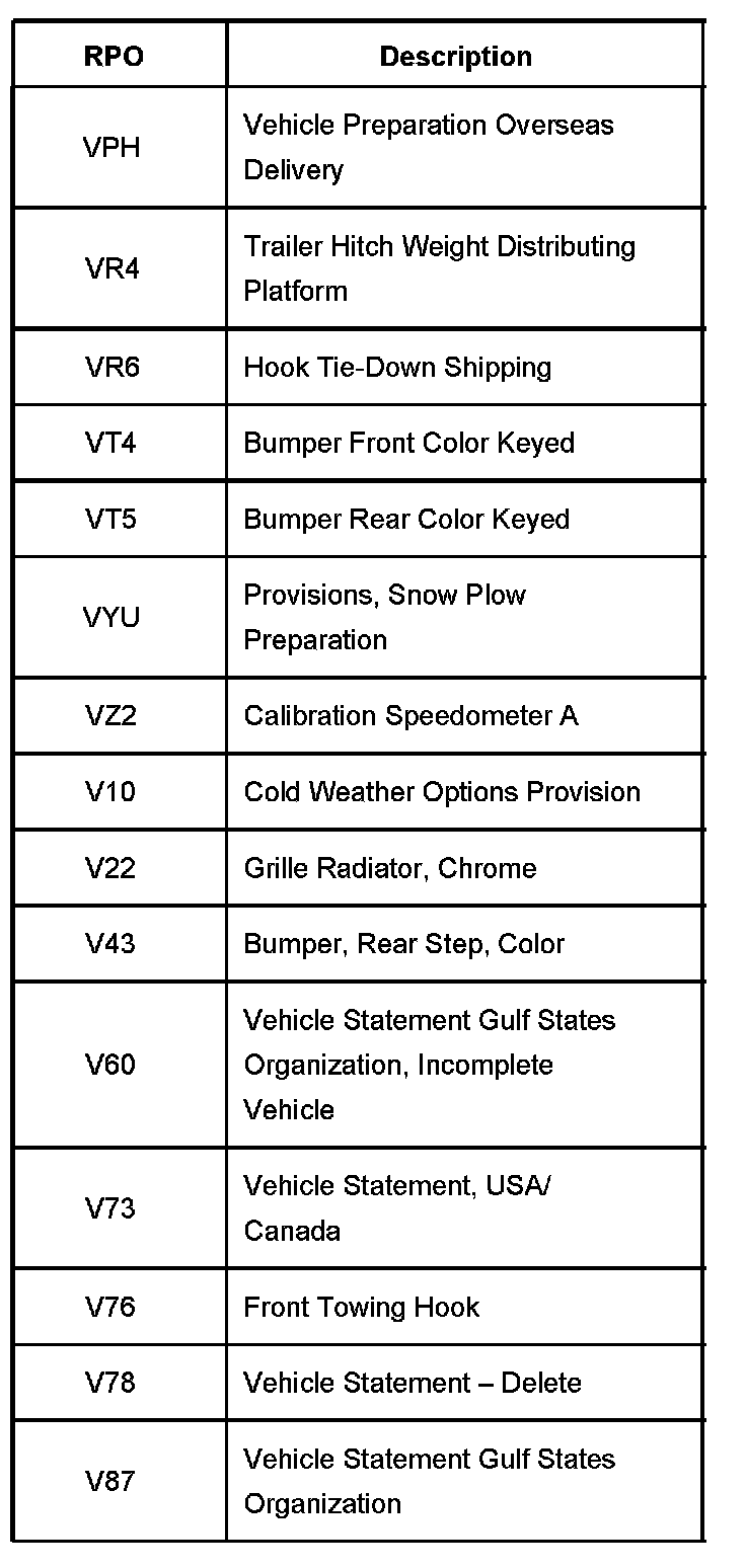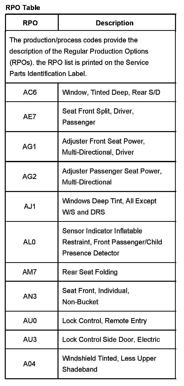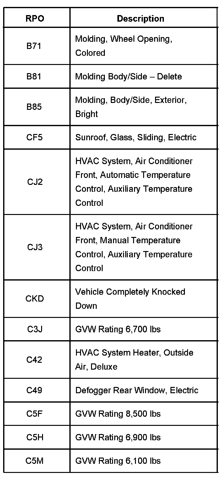 RPO Code List Part 1: