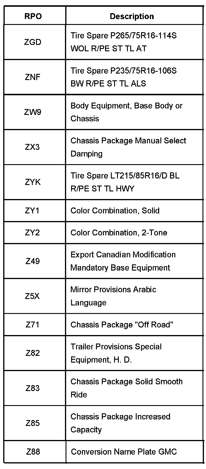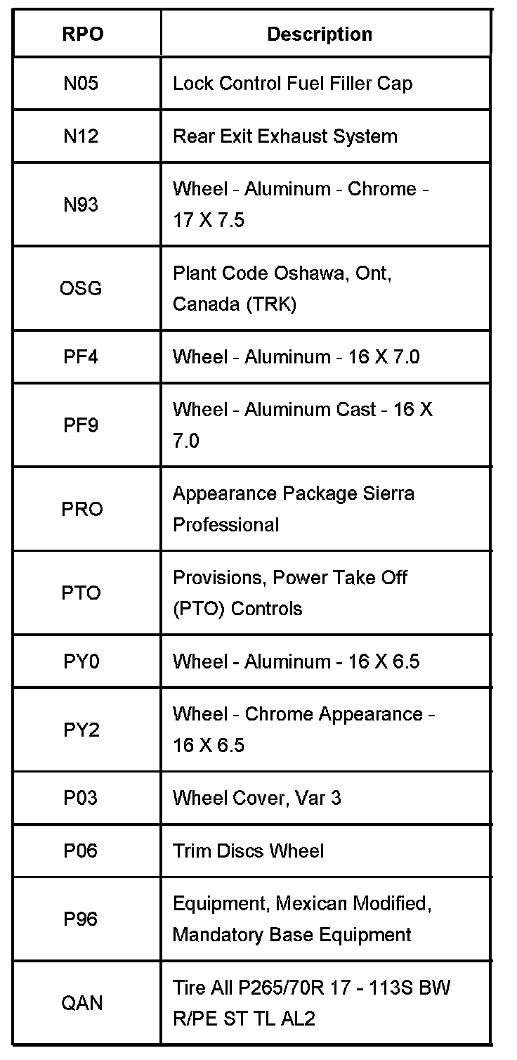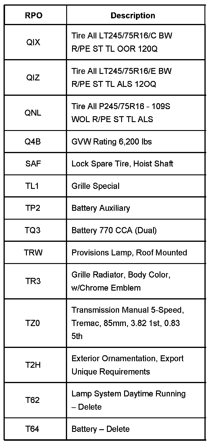 RPO Code List Part 13: