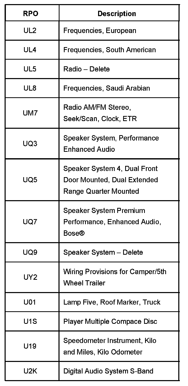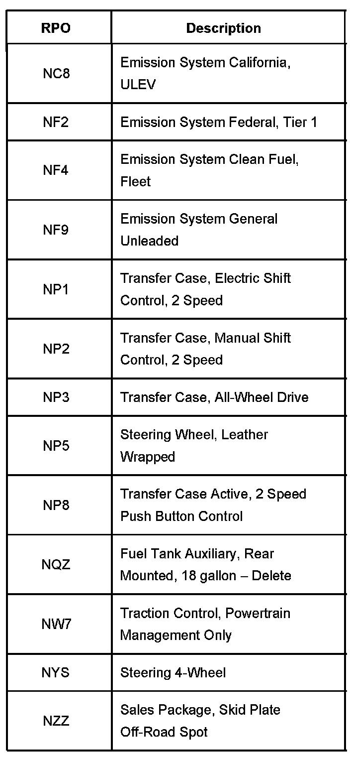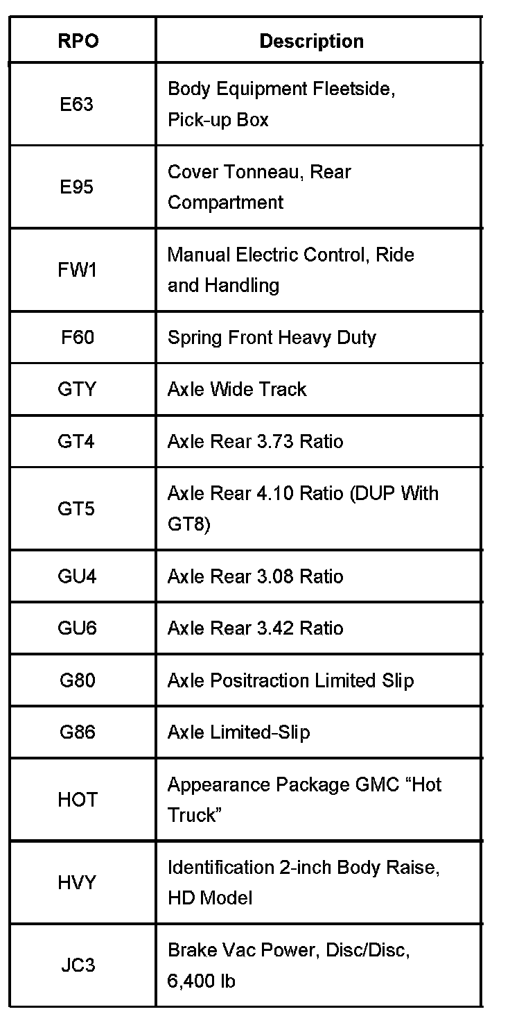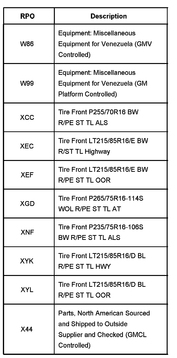 RPO Code List Part 13: