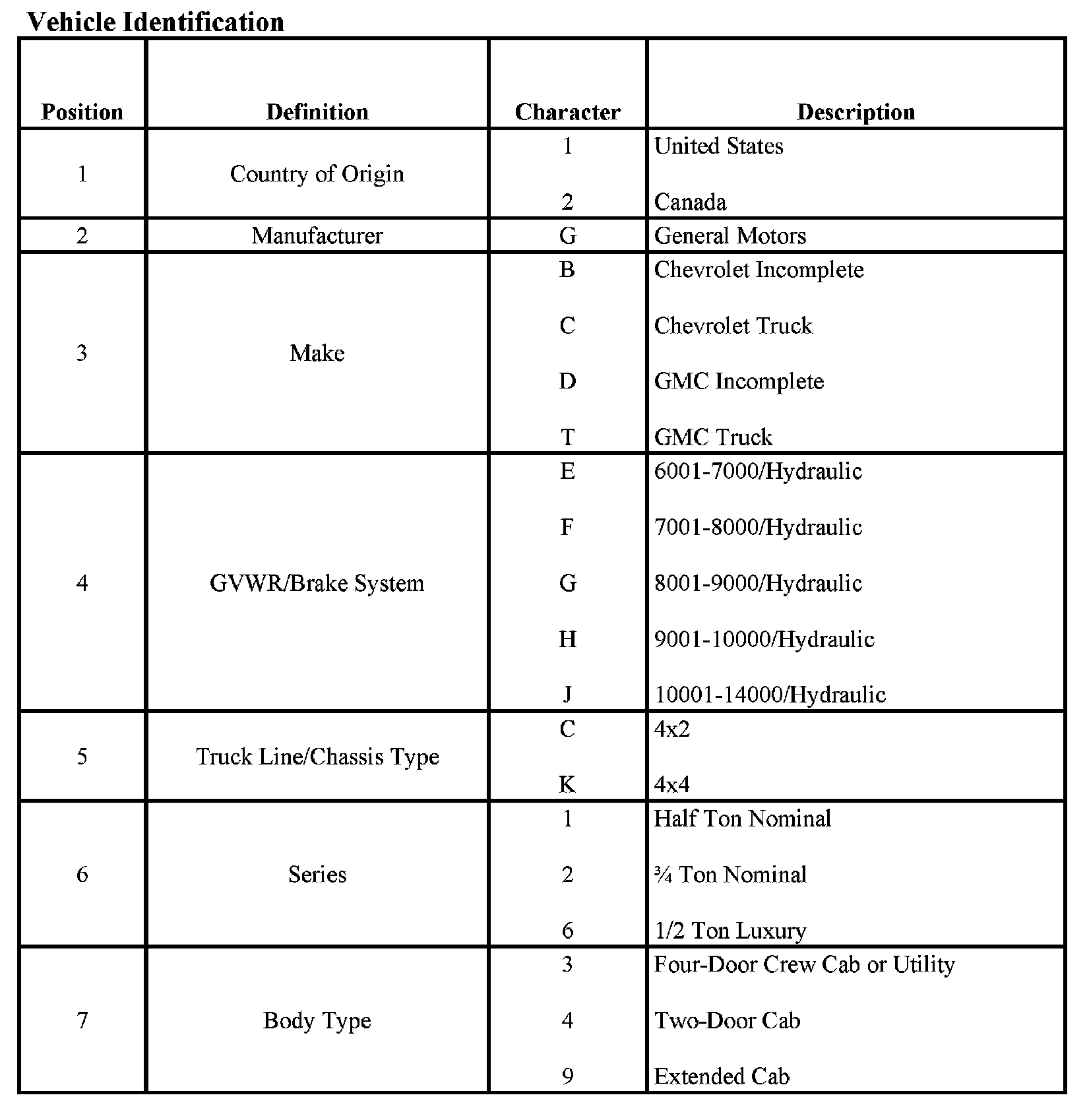 VEHICLE IDENTIFICATION