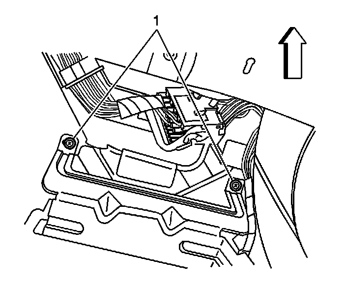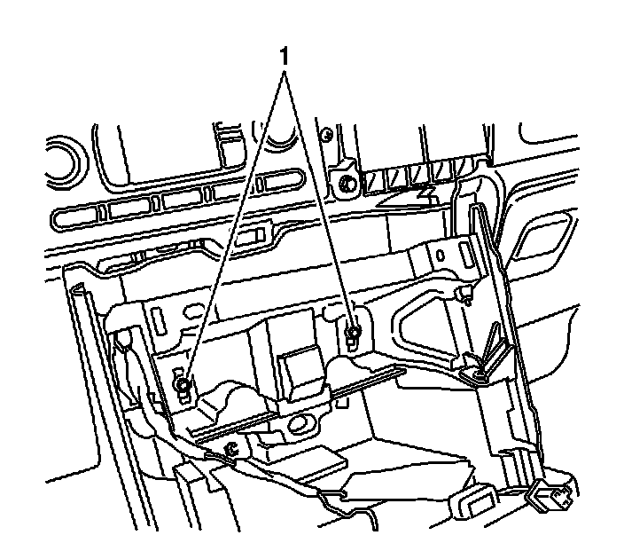 7. Remove the 4 screws retaining the upper console bracket to the lower console bracket. The front 2 screws (1) are shown in the graphic.
