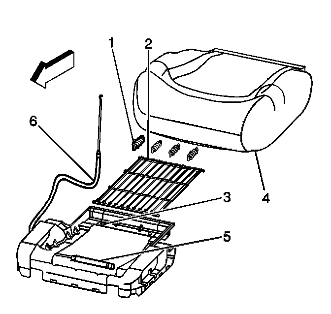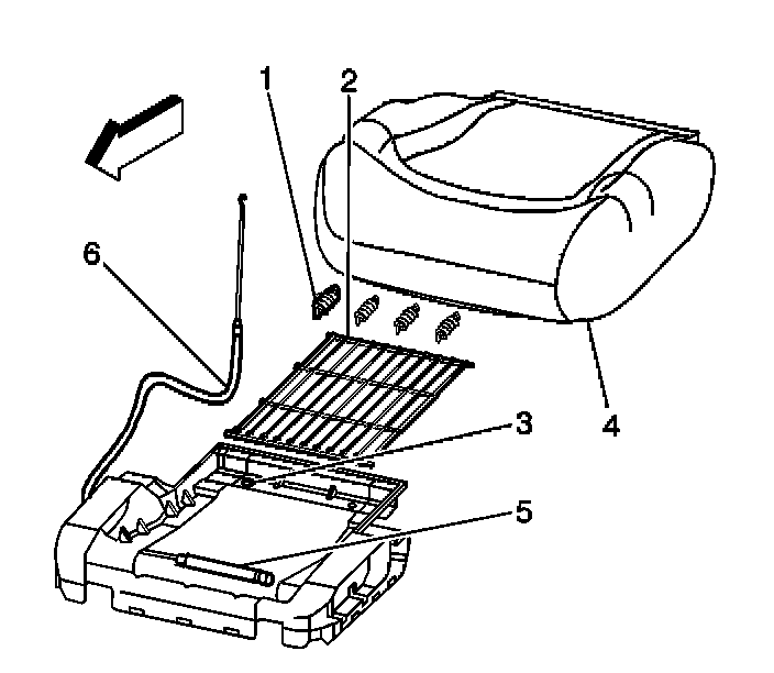 7. Connect the lumbar cable (6) underneath the seat cushion (disconnect the wire harness if equipped with power lumbar).