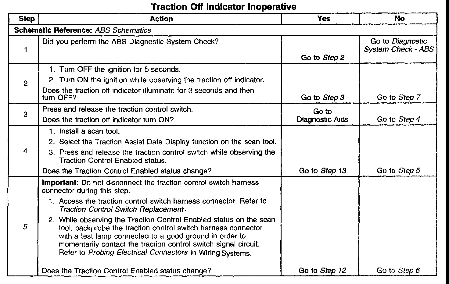 Traction Off Indicator Inoperative
