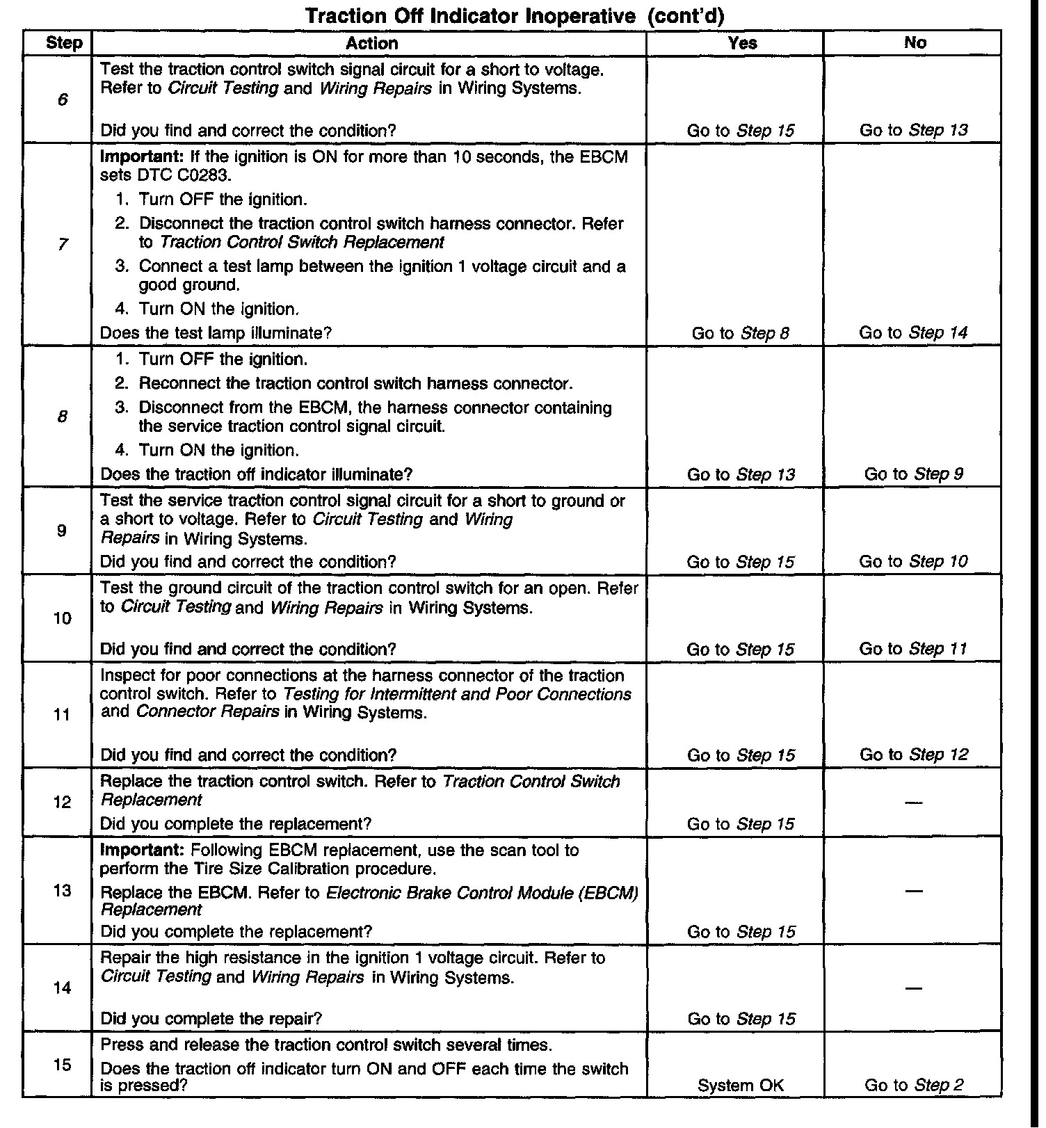 2. This step tests if the IPC is able to illuminate the traction off indicator during the bulb check.