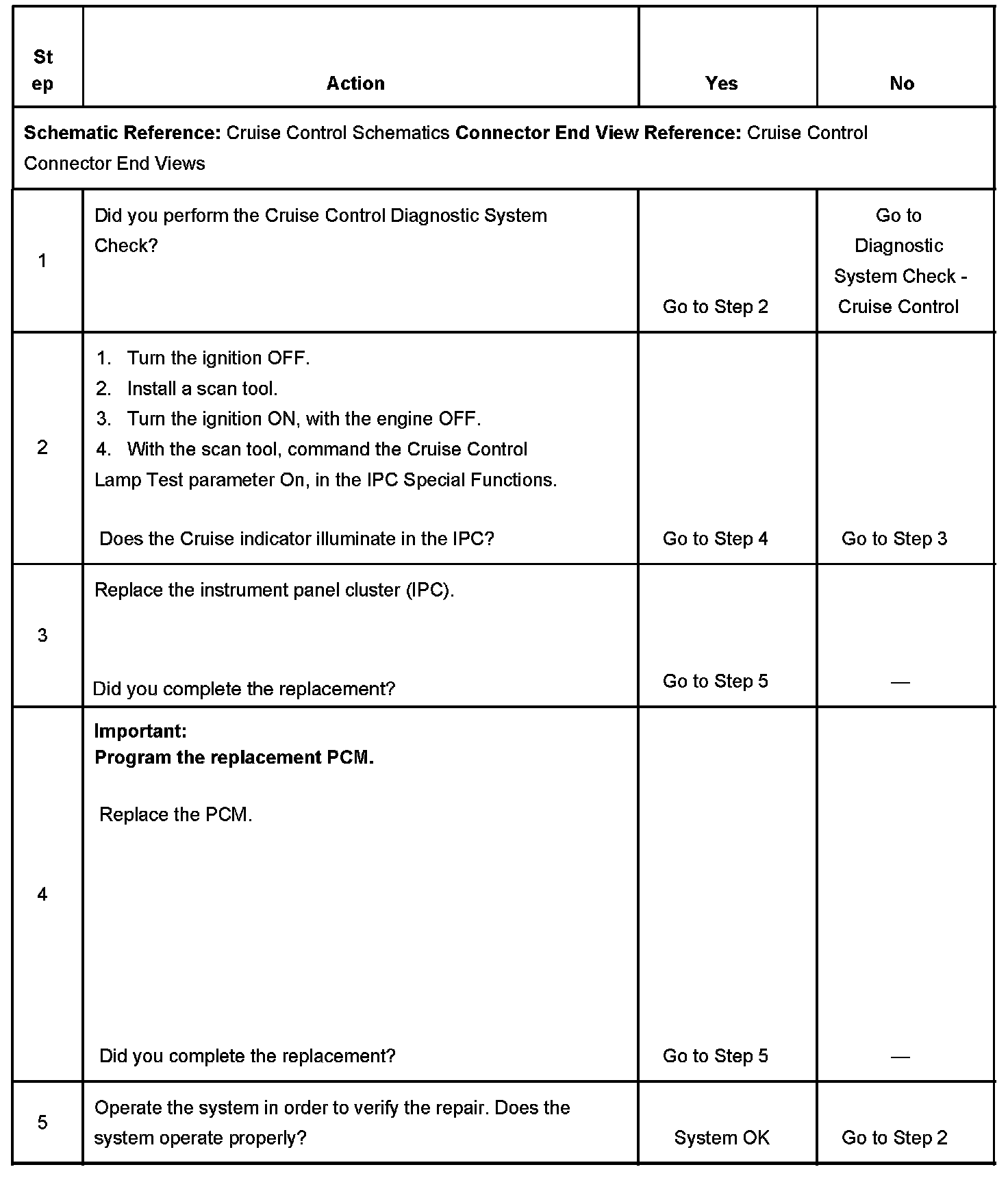 Cruise Control - Indicator Inoperative