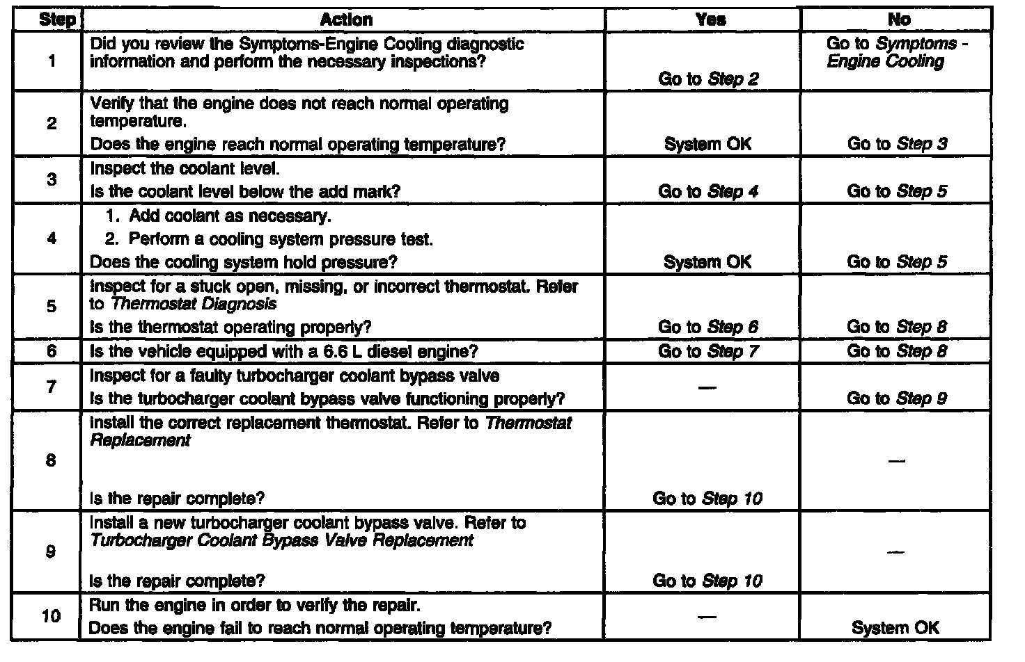 Engine Fails To Reach Normal Operating Temperature Step 1 - 10: