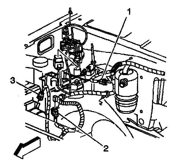 19. Disconnect the Exhaust Gas Recirculation (EGR) valve electrical connector (1).