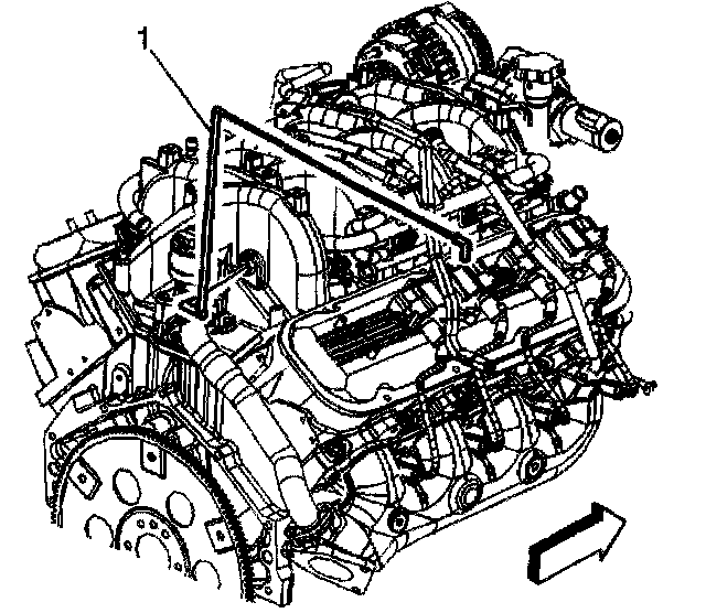 23. Install the bypass valve vacuum hose (1) to the intake manifold.