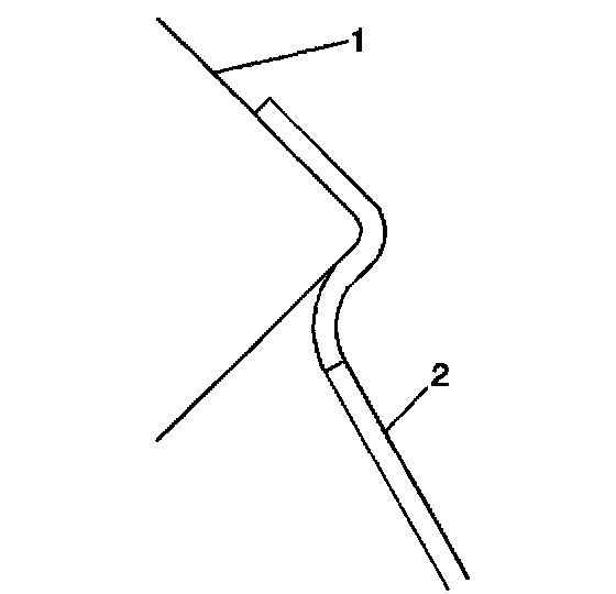 3. Ensure the splash shield (2) snap fits between the cylinder heads (1).