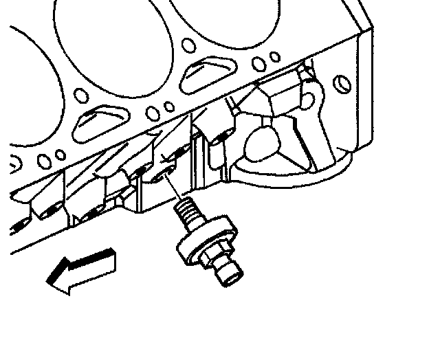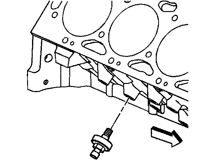 11. Apply sealant GM P/N 12346004, (Canadian P/N 10953480), or equivalent to the threads of the oil gallery plugs.