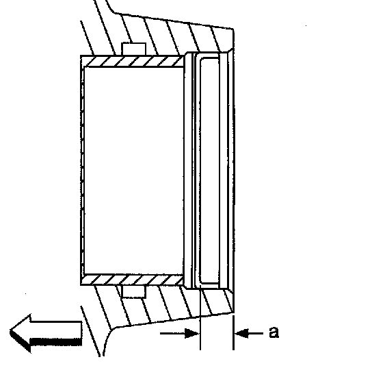 22. Install the NEW camshaft rear bearing hole plug to the proper depth of (A) 7.600 - 6.200 mm (0.299 - 0.244 inch).