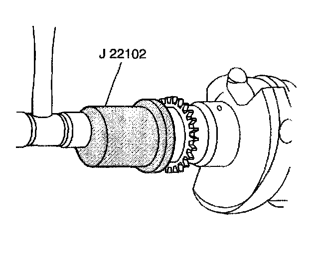 1. Use the J22102 in order to install the crankshaft sprocket. Align the keyway of the crankshaft sprocket with the crankshaft pin.